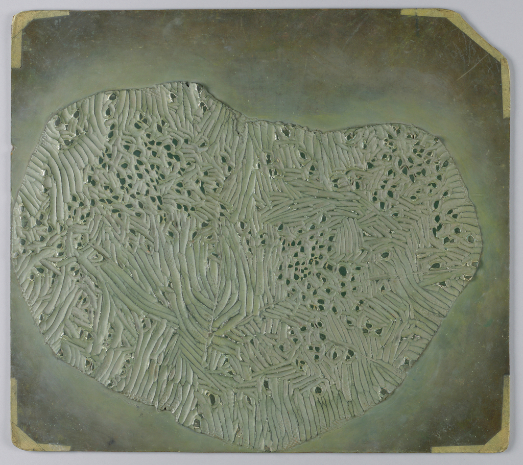 This is a Linoleum printing blocks. It is dated 1954 and we acquired it in 1985. It is a part of the Textiles department.