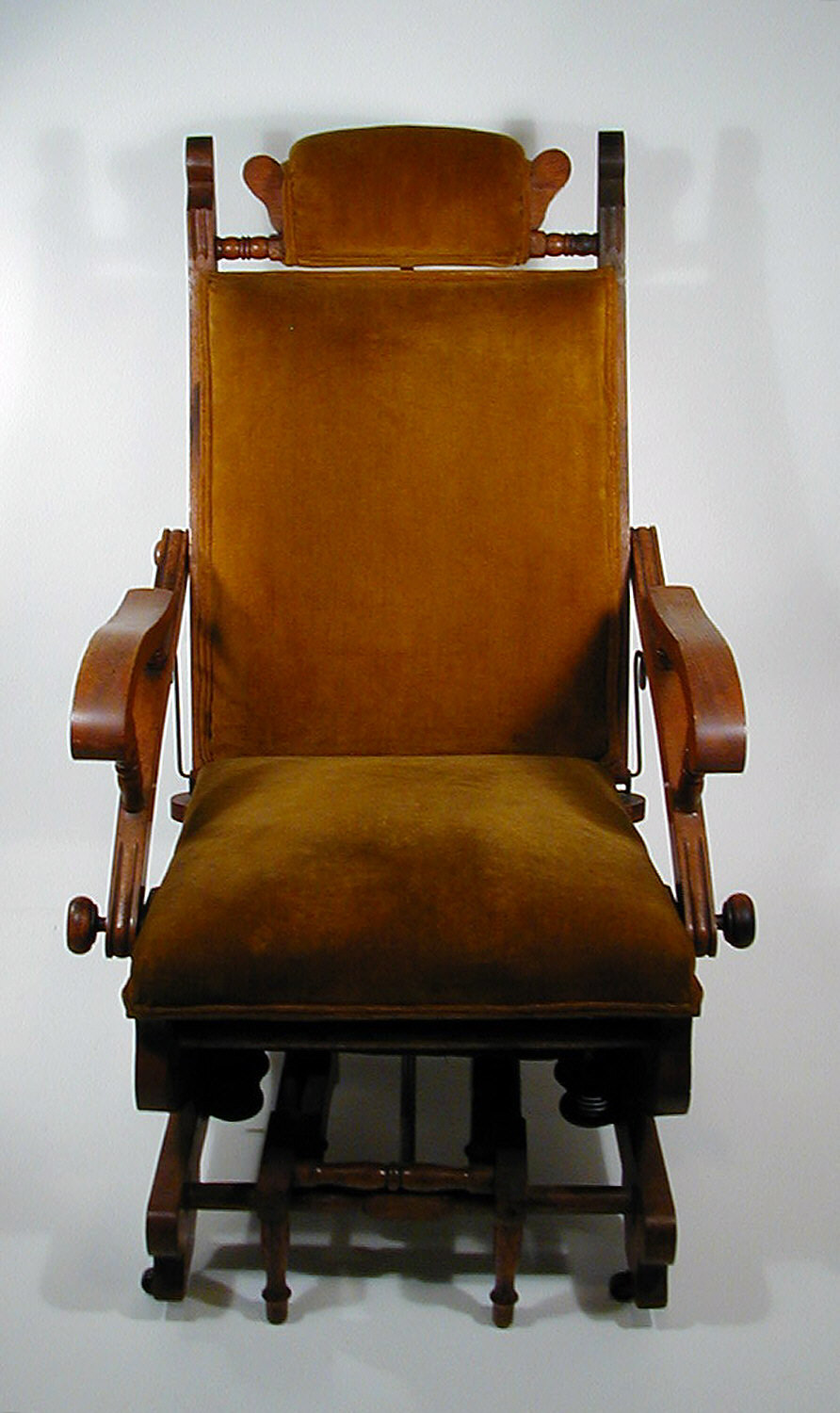 Chair (USA); Manufactured by Herkimer Chair Works; wood [oak], metal, fabric; H x W x D: 96.5 x 57.5 x 119cm (38 x 22 5/8 x 46 7/8in.); Gift of Jean and Martin Gerstell; 1986-112-1