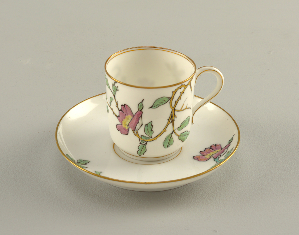 This is a cup and saucer. It was manufactured by Haviland & Co.. We acquired it in 1986. It is a part of the Product Design and Decorative Arts department.