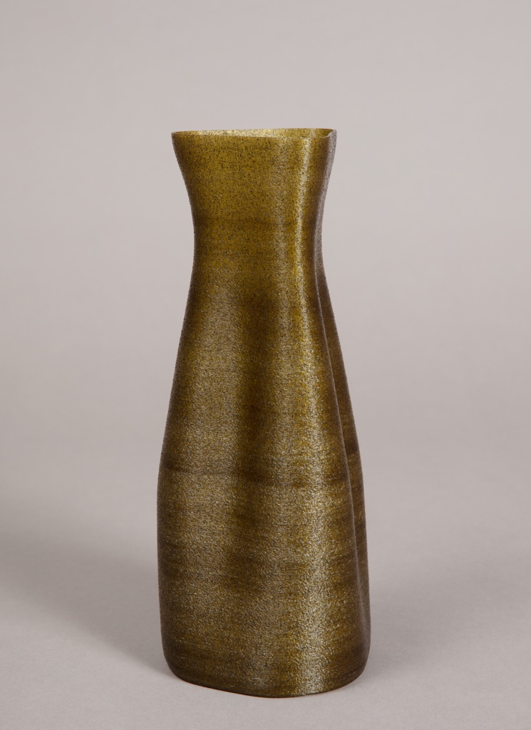 This is a vessel. It was designed by Studio Klarenbeek & Dros and Atelier Luma and manufactured by Studio Klarenbeek & Dros and Atelier Luma. It is dated 2018 and we acquired it in 2020. Its medium is 3d-printed biomaterial (microalgae, sugar-based biopolymer). It is a part of the Product Design and Decorative Arts department.