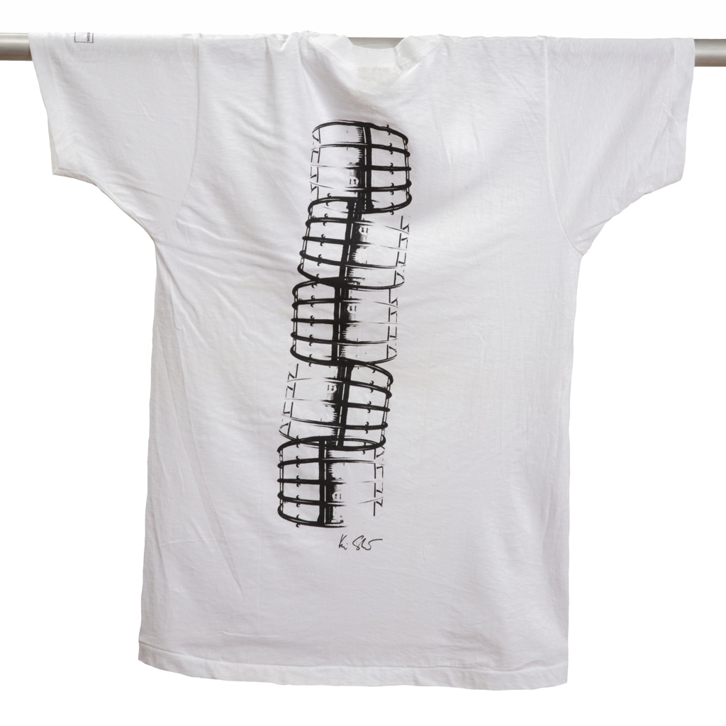 T-shirt; Designed by Kim Steele (American, b. 1950); Manufactured by WilliWear Ltd.; screenprint on cotton; H x W: Approx. 76.2 × 50.8 cm (30 × 20 in.); Gift of Christo and Jeanne-Claude Foundation; 2022-39-3