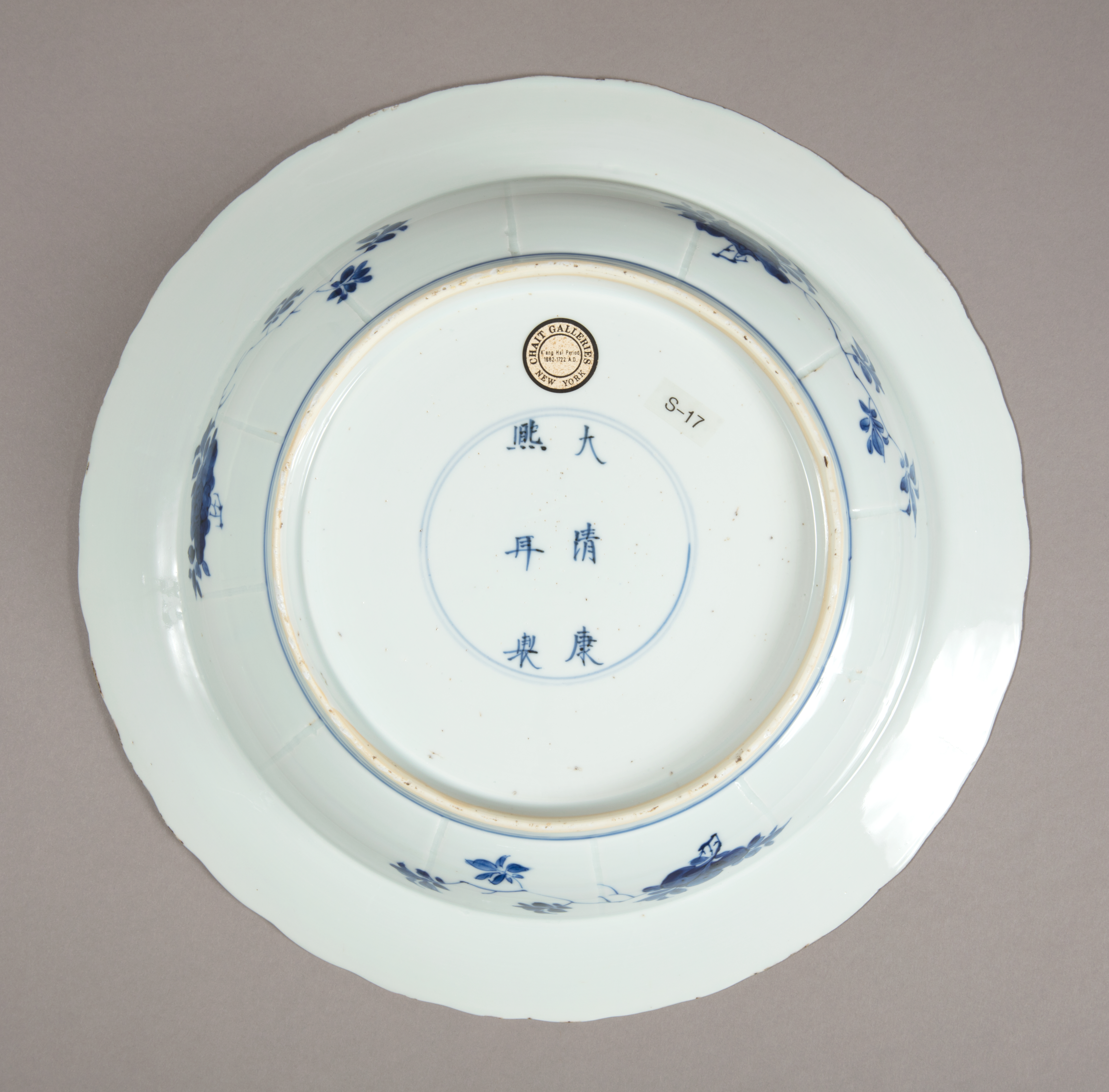 reverse [in underglaze blue]: six-character Kangxi mark ('Da Qing Kang Xi Nian Zhi') within a double circle