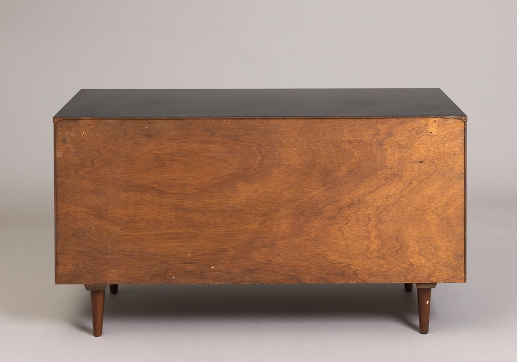 Buffet Buffet; Designed by Greta Magnusson Grossman (American, born Sweden, 1906 – 1999); Manufactured by Glenn of California (American); walnut, thermoset plastic, metal; H x W x D: 72.1 × 118.6 × 47.6 cm (28 3/8 × 46 11/16 × 18 3/4 in.); Museum purchase through the American Women's History Initiative Acquisitions Pool, administered by the Smithsonian Women's History Initiative and from General Acquisitions Endowment Fund; 2020-14-4
