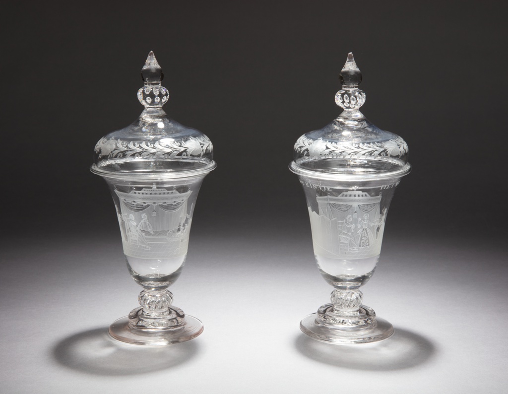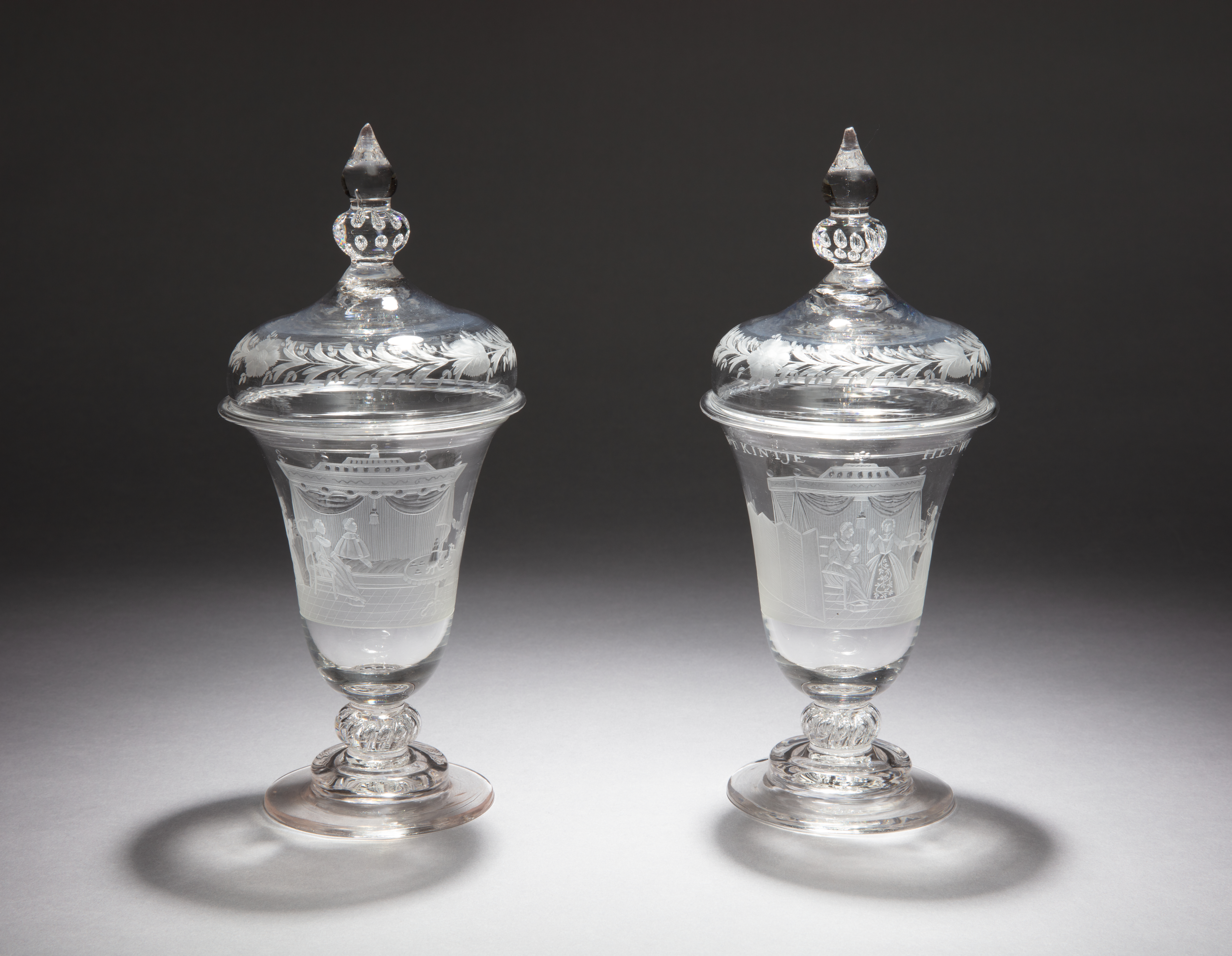 This is a drinking glass and cover. It is dated ca. 1760 and we acquired it in 2021. Its medium is lead glass. It is a part of the Product Design and Decorative Arts department.