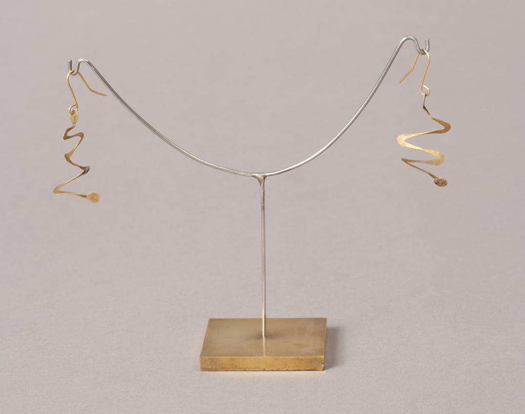 This is a earrings. It was designed by George Rickey and made for Edith Rickey. It is dated n.d. and we acquired it in 2021. Its medium is gold. It is a part of the Product Design and Decorative Arts department.