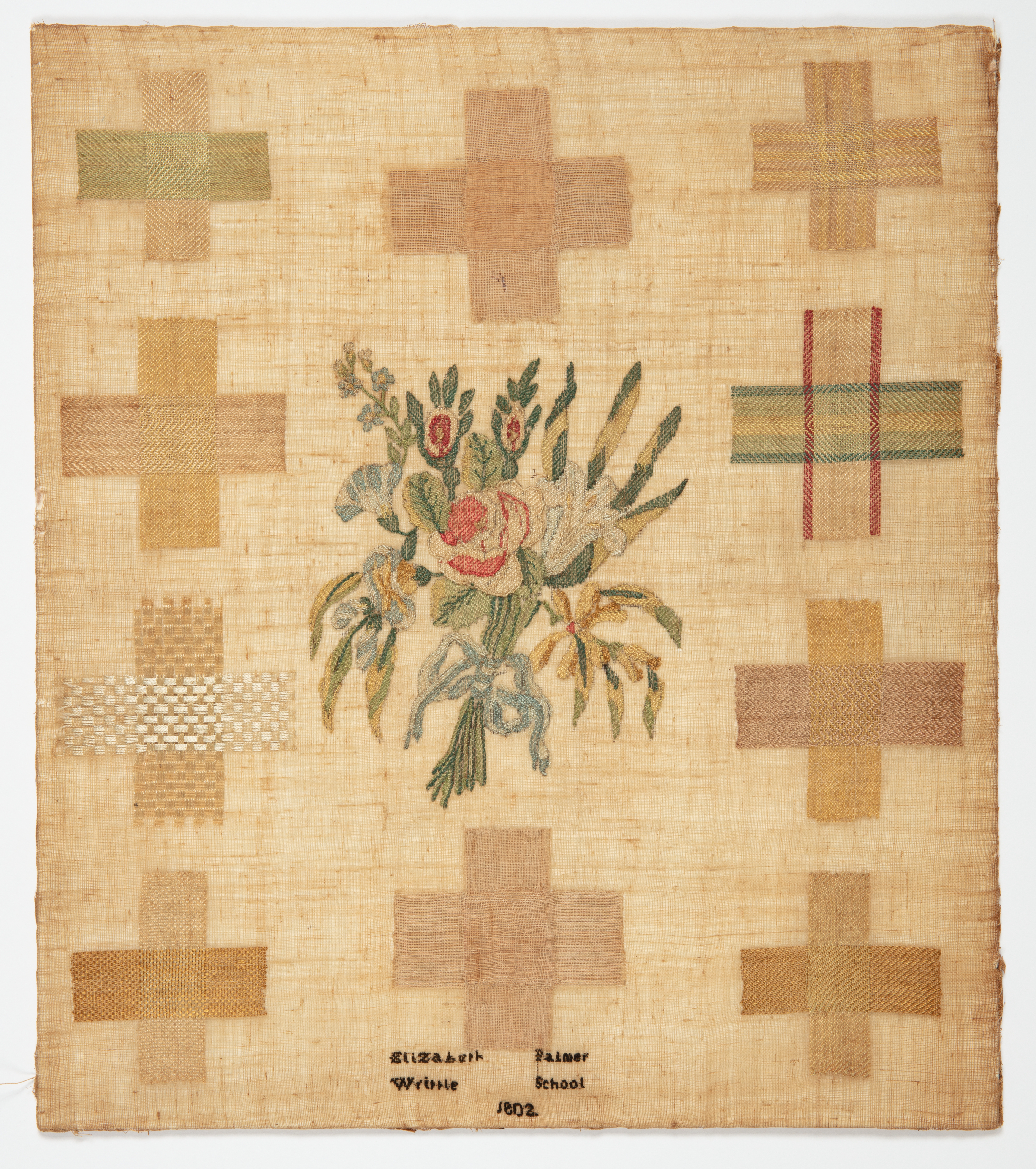 Embroidered inscription: Elizabeth Writtle Palmer School 1802