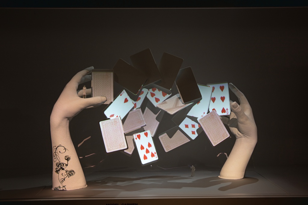 “Bregenz has hosted some of the world’s most breathtaking stage designs—all by men. My design for the opera Carmen was the first by a woman since 1946. Two 22-meter-high hands emerged from the lake, throwing a pack of cards in the air. Suspended between sky and sea, projection made the cards dance during the performances, while concealed steel trusses held them in place through two years of high winds and snowstorms.”
