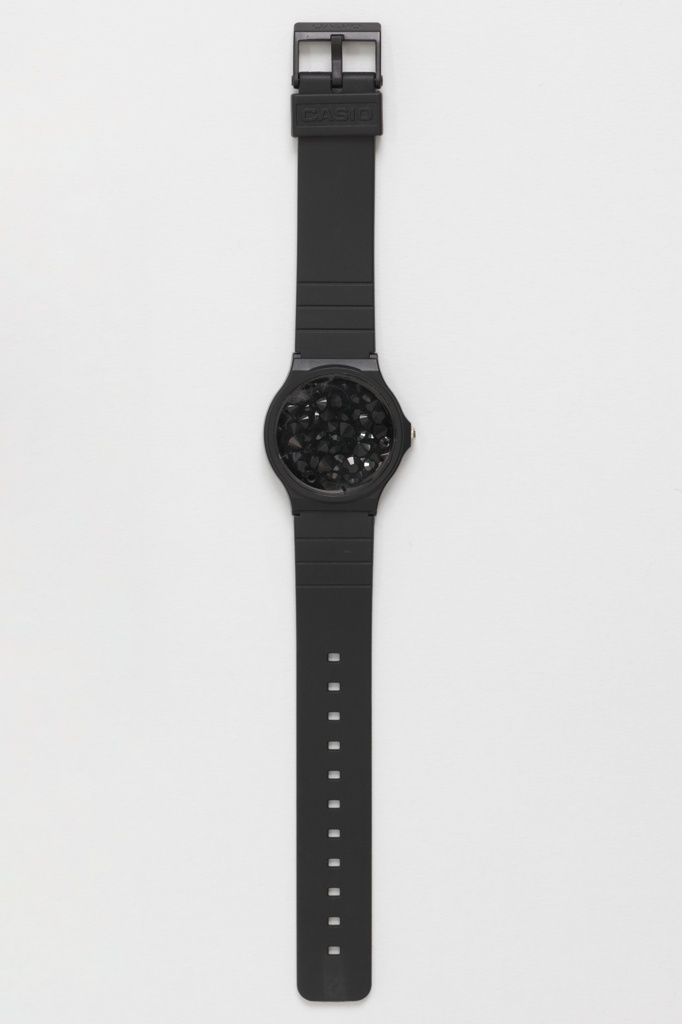 Moment to Moment Wrist Watch Watch; Designed by Tobias Wong (1974–2010); Collaborator: Karyna Schultz; Produced by Inform Interiors; rubber, plastic, stainless steel, glass; L x W x D (overall): 22.9 × 3.5 × 0.6 cm (9 in. × 1 3/8 in. × 1/4 in.); The Tobias Wong Collection, Gift of Phyllis Chan and Gordon Wong; 2024-4-28