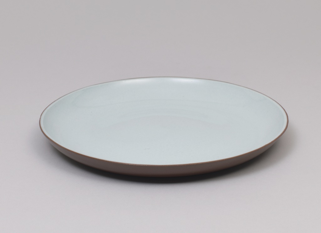 This is a plate. It was designed by Eva Zeisel and manufactured by Riverside Ceramic Company. It is dated 1947 and we acquired it in 2024. Its medium is porcelain. It is a part of the Product Design and Decorative Arts department.