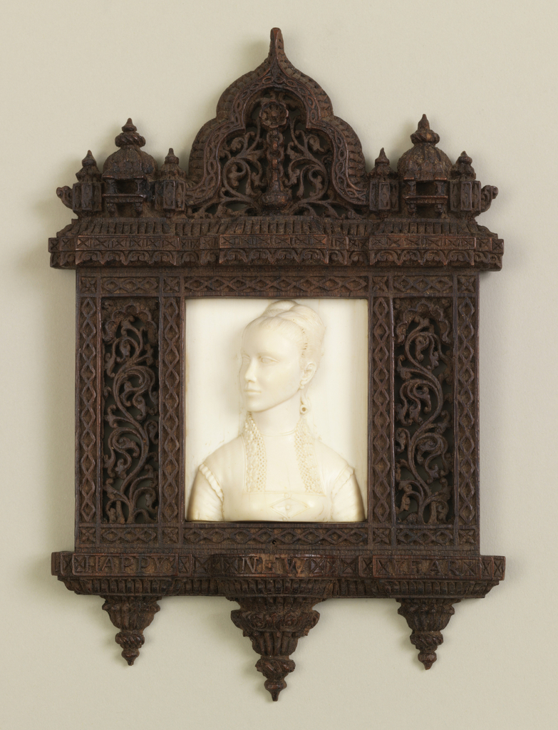 This niche with its bust of Meta, kept by the de Forests, may have been a wedding present from the mistri (master) craftsmen. Not a de Forest design, it was intended as a display of the high quality wood carving and ivory work of which the men were capable.