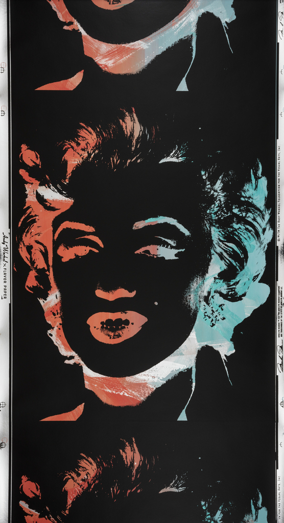 Sidewall, Marilyn Monoprint; Manufactured by Flavor Paper (United States); screen printed and hand painted on chrome mylar; L x W: 457.2 × 74.9 cm (15 ft. × 29 1/2 in.) Repeat H: 87 cm (34 1/4 in.); Gift of Flavor Paper; 2015-44-4