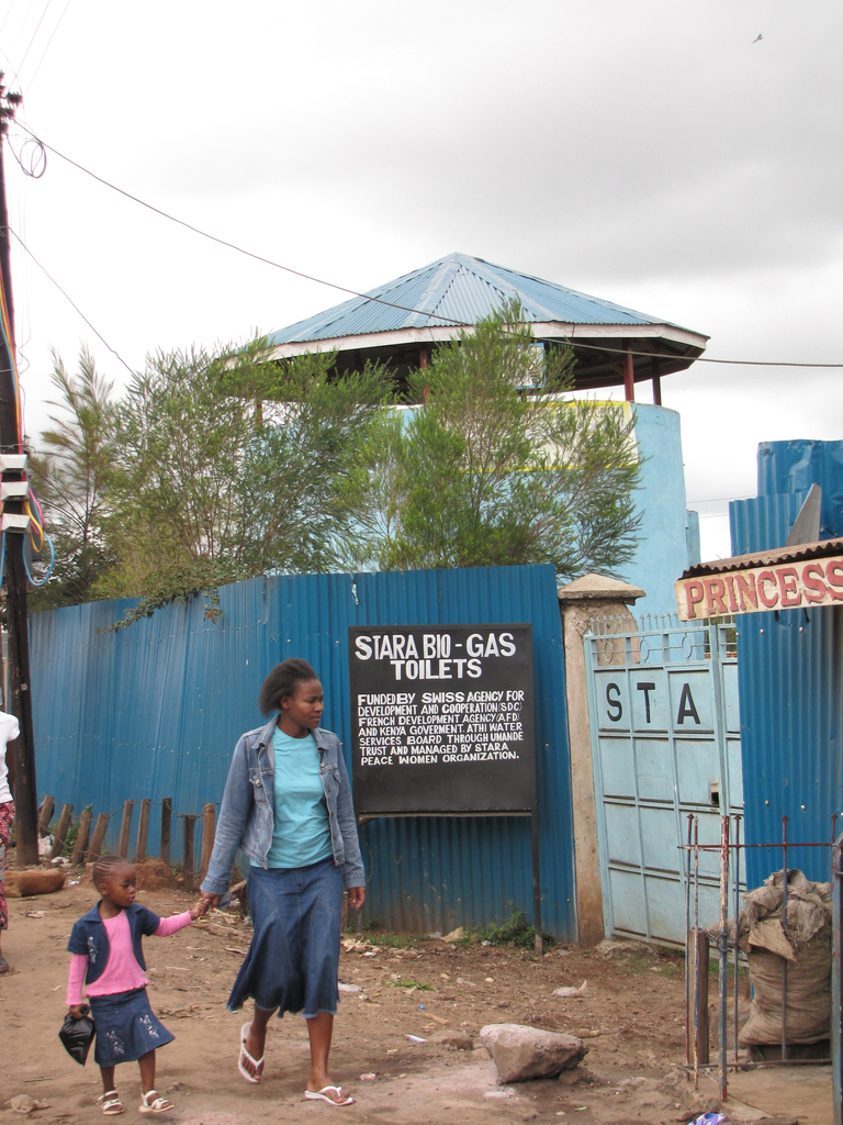 In the slums and informal settlements of Nairobi, there is only one latrine for every 150 people, leading to pollution and diseases. Kenya-based Umande Trust worked with residents and artisans in the slums of Nairobi and Kisumu to design the BioCentres. Built from locally available technology and materials, the multi-story BioCentres uses anaerobic—or airless—digestion, in which bacteria transforms human waste into fertilizer and methane-based gas for cooking and heating water, reducing carbon emissions. A shallow pit latrine feeds into a domed underground bio-digester and expansion chambers, which need little maintenance since there are no moving parts. Generated bio-gas and liquid fertilizer can be sold for income.