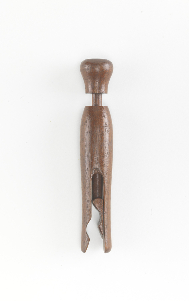 The earliest American patent for a clothespin was granted in 1832, though designs for hanging one’s laundry were likely known in England before then. In 1853, Vermont inventor David M. Smith patented a groundbreaking version of the device that employed two hinged arms, a design that more closely resembles today’s clothespin. These patent models represent some of the 146 patents issued for clothespins between the years 1852 and 1887. Most have been largely forgotten as a product of shortsighted ingenuity, but this collection nonetheless sheds light on the patent frenzy of the late 19th-century. Most patented clothespins in this period were for minor improvements, and almost all share a common goal: to keep clothes on the drying line without falling off. Some, including a later version patented by Smith in 1867, propose alternative materials for existing designs (in this case, substituting the wire for a cheaper wooden joint). Others dispense with a joint altogether in favor of a cut wood model, like the easily portable version patented by Henry Mellish in 1871. Today, an estimated 60 percent of all American homes have an automatic clothes dryer, rendering the clothespin more or less obsolete—except in the case of children’s craft projects. Indeed, Vermont’s National Clothespin Factory, the last factory producing wooden clothespins in the United States, closed its doors in 2002.