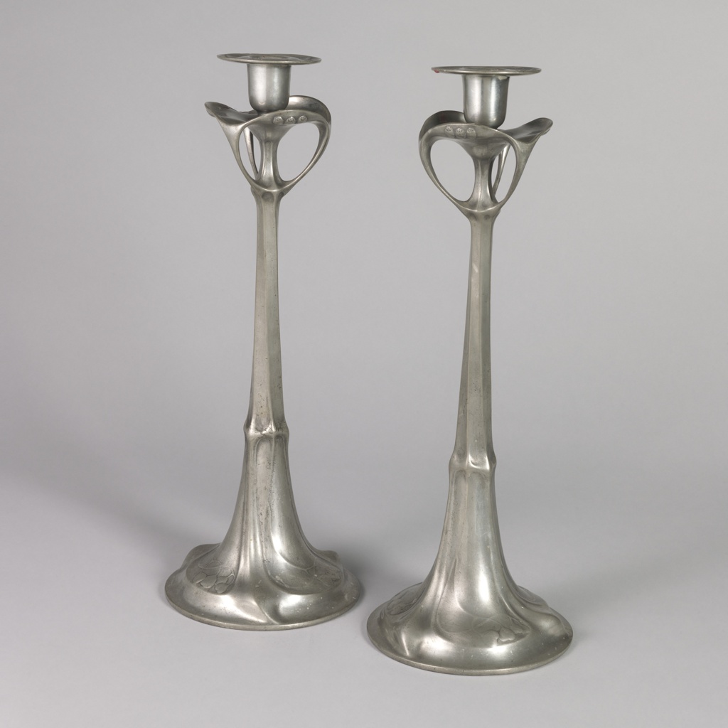 Candlestick Candlestick; Designed by Hugo Leven (German, 1874-1956); Manufactured by J. P. Kayser & Sohn (Germany); pewter; H x diam.: 41.9 x 15.2 cm (16 1/2 in. x 6 in.); Gift of Gerald G. Stiebel and Penelope Hunter-Stiebel; 2013-49-2-a,b