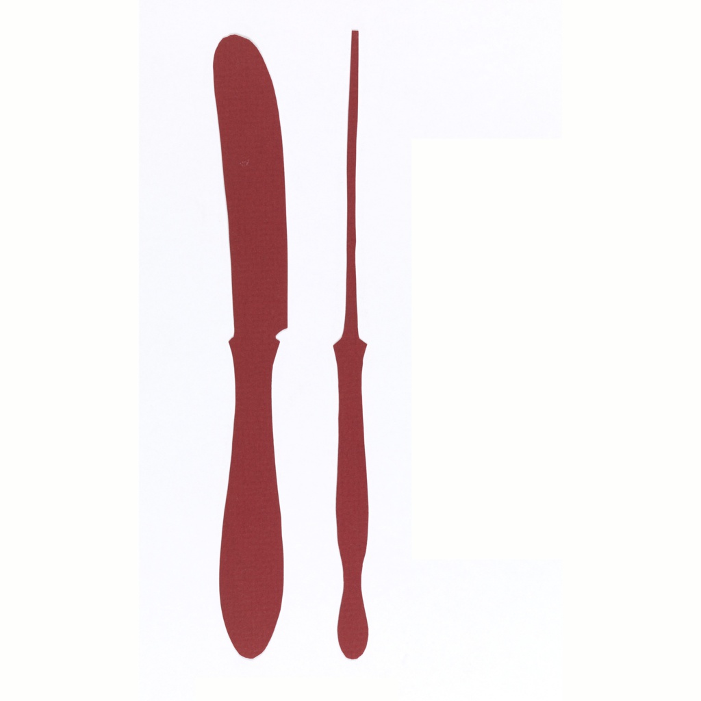 Cut-out, Cut-out Design for Knife; Designed by Eva Zeisel (American, b. Hungary, 1906–2011); Design Team Member: Olivia Barry (American, b. Canada, b. 1974); USA; red-coated heavy paper; verso: graphite; cut; 22.7 x 2.4 cm (8 15/16 x 15/16 in.); Gift of the Estate of Eva Zeisel; 2014-8-52