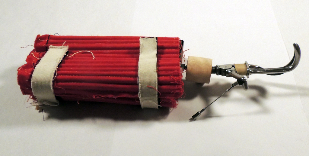 BamBam is a concept for an accessible adjustable prosthetic system designed for people living in agricultural communities. 80% of all people with amputations live in developing countries, where even used or obsolete prosthetics are expensive and scarce. Richardson experimented with recycled bottles and 3D printing before hitting on bamboo, a material that is strong, light, cheap, and locally grown. An adjustable cuff connects to various tools, including a rake, broom, and shovel. A canvas sleeve reinforced with bamboo ribs secures the prosthetic to the user’s amputation limb.