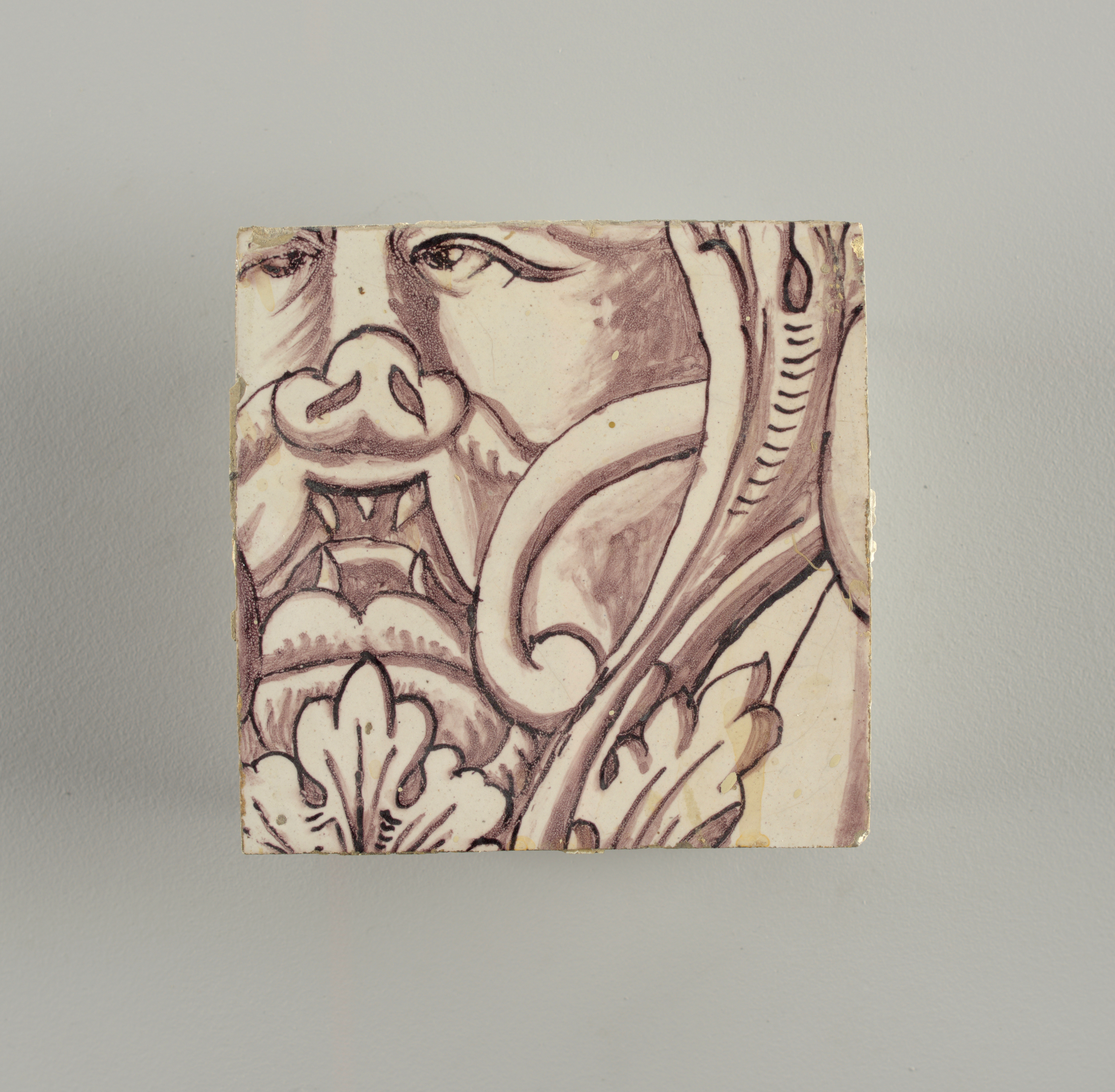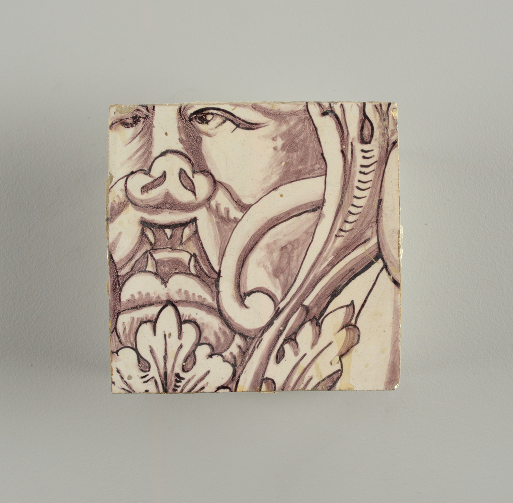 This is a panel. It is dated ca. 1725. Its medium is tin-glazed earthenware, underglaze manganese decoration. It is a part of the Product Design and Decorative Arts department.