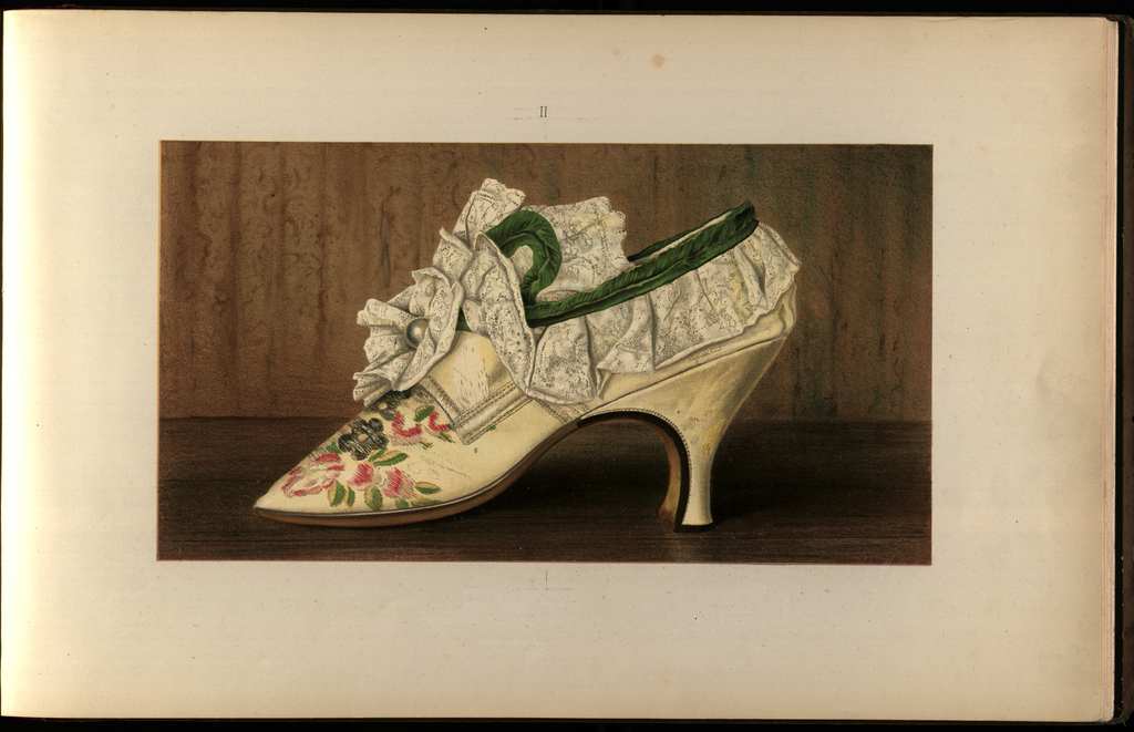 <ref name=CH>{{cite web |url=https://www-6.collection.cooperhewitt.org/objects/68775991/ |title=Book Illustration, Ladies' Old-fashioned Shoes, Shoe Belonging to Miss Langley, plate 2 |author=Cooper Hewitt, Smithsonian Design Museum |accessdate=20 December 2025 |publisher=Smithsonian Institution}}</ref>