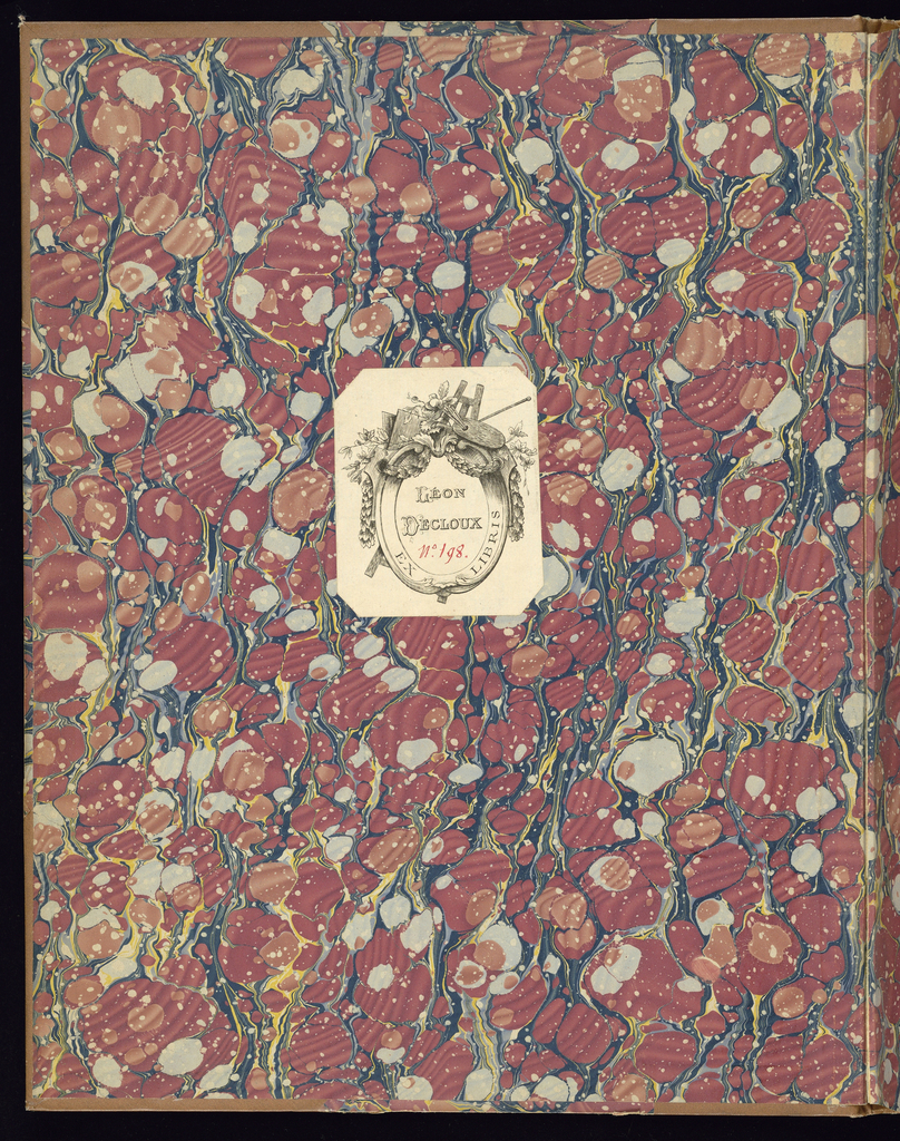 Léon Decloux ex-libris pasted onto center of upper cover pastedown; inscribed in red ink in center of Léon Decloux Ex Libris: 198