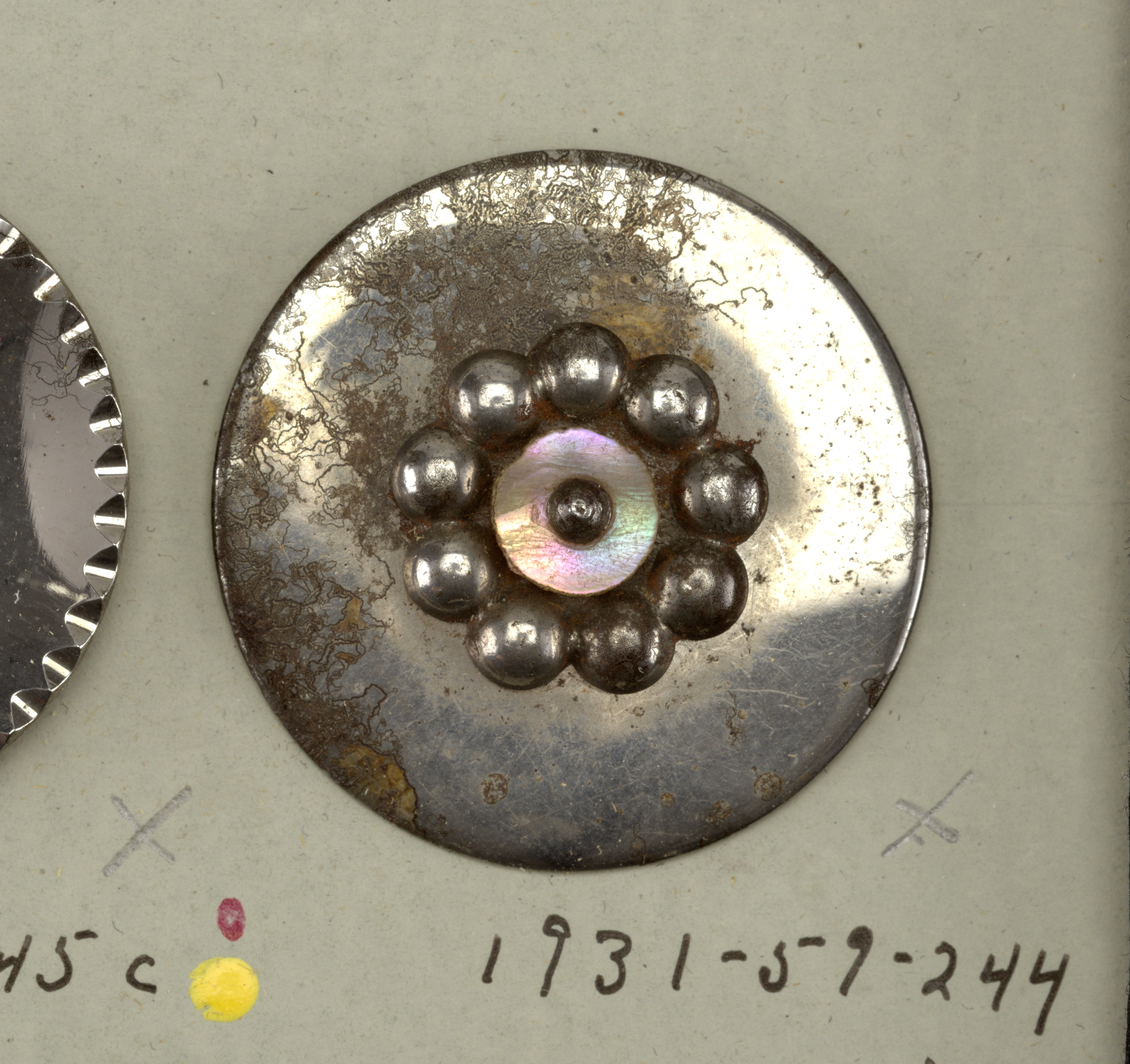 Button; cut steel; H x diam. (Average): 3.8 cm (1 1/2 in.); 1931-59-244-n