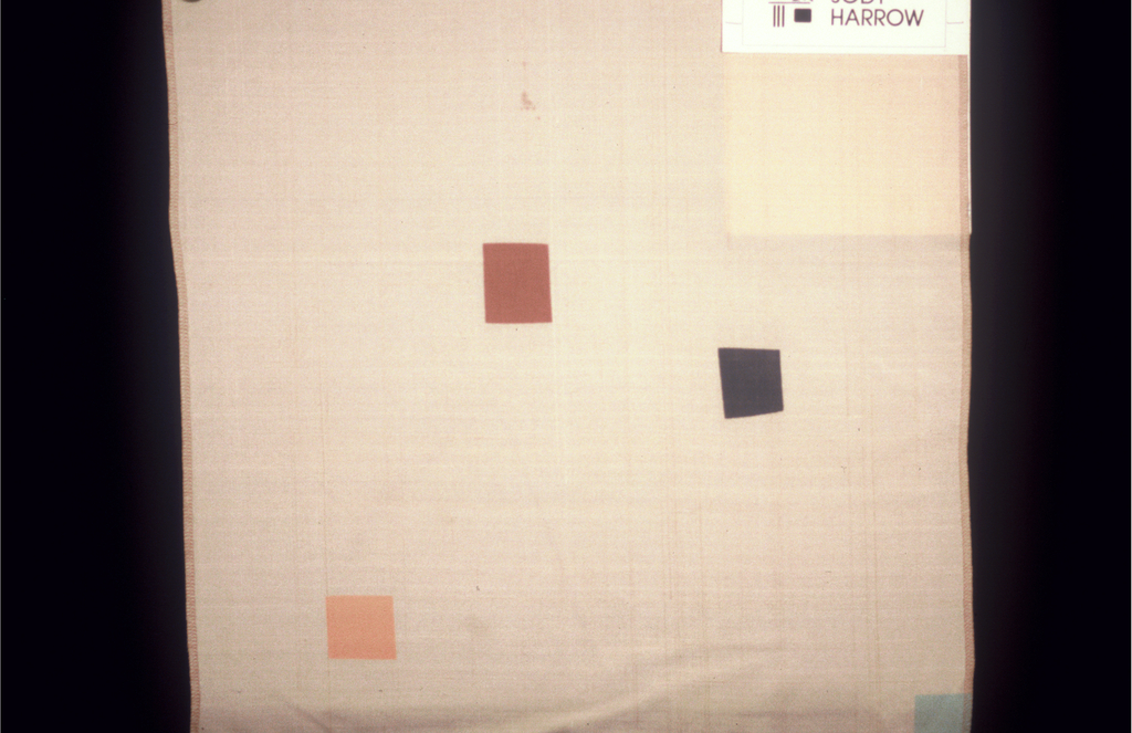 This is a Samples. It was designed by Jody Harrow and printed by Jody Harrow and made for PEKA PRINTS. It is dated 1983–85 and we acquired it in 1990. Its medium is various materials and its technique is hand screen printed. It is a part of the Textiles department.