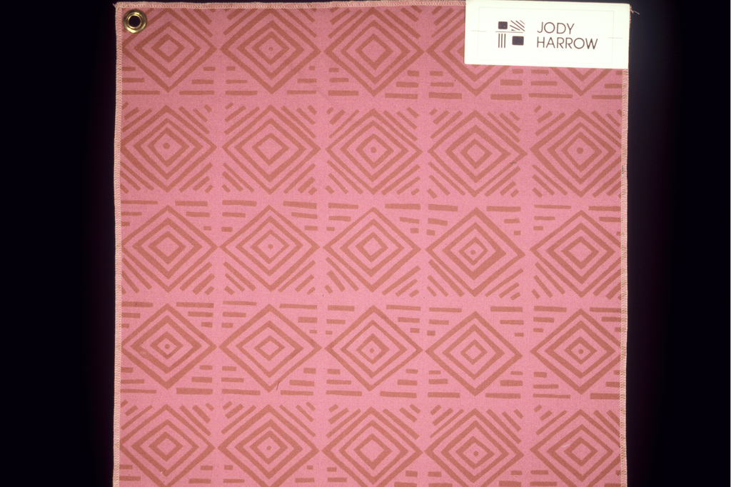 This is a Samples. It was designed by Jody Harrow and printed by Jody Harrow and made for PEKA PRINTS. It is dated 1983–85 and we acquired it in 1990. Its medium is various materials and its technique is hand screen printed. It is a part of the Textiles department.