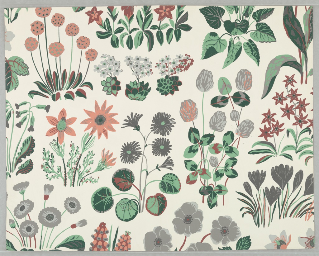 Sidewall, Springtime; Manufactured by Wilton E. Owen, Inc.; screen-printed paper; L x W: 50 × 63.5 cm (19 11/16 in. × 25 in.); Gift of Wilton E. Owen, Inc.; 1955-169-1-d