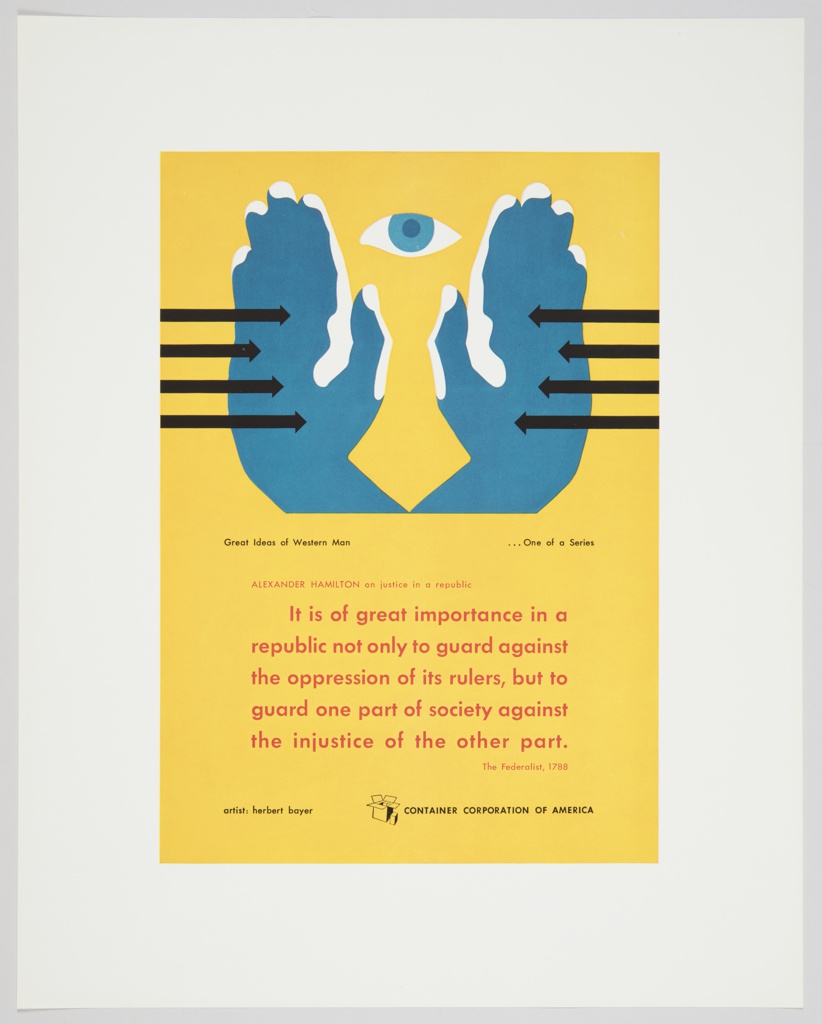 Print, Great Ideas of Western Man Featuring Alexander Hamilton; Designed by Herbert Bayer (American, b. Austria, active Germany and USA, 1900–1985); Client: Container Corporation of America (United States); offset lithograph on glossy white paper; 35.4 × 28 cm (13 15/16 × 11 in.); Museum purchase with funding provided by the Buddy Taub Foundation, Dennis A. Roach and Jill Roach Directors; 2016-54-29